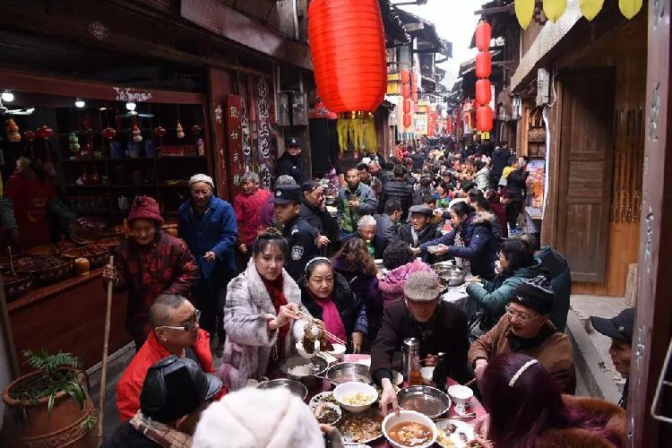 今年的“千米长宴”大有不同,不仅有祈福祭祀、民俗拜年、“打盆”绝技表演,还可以一双筷子吃遍全街。