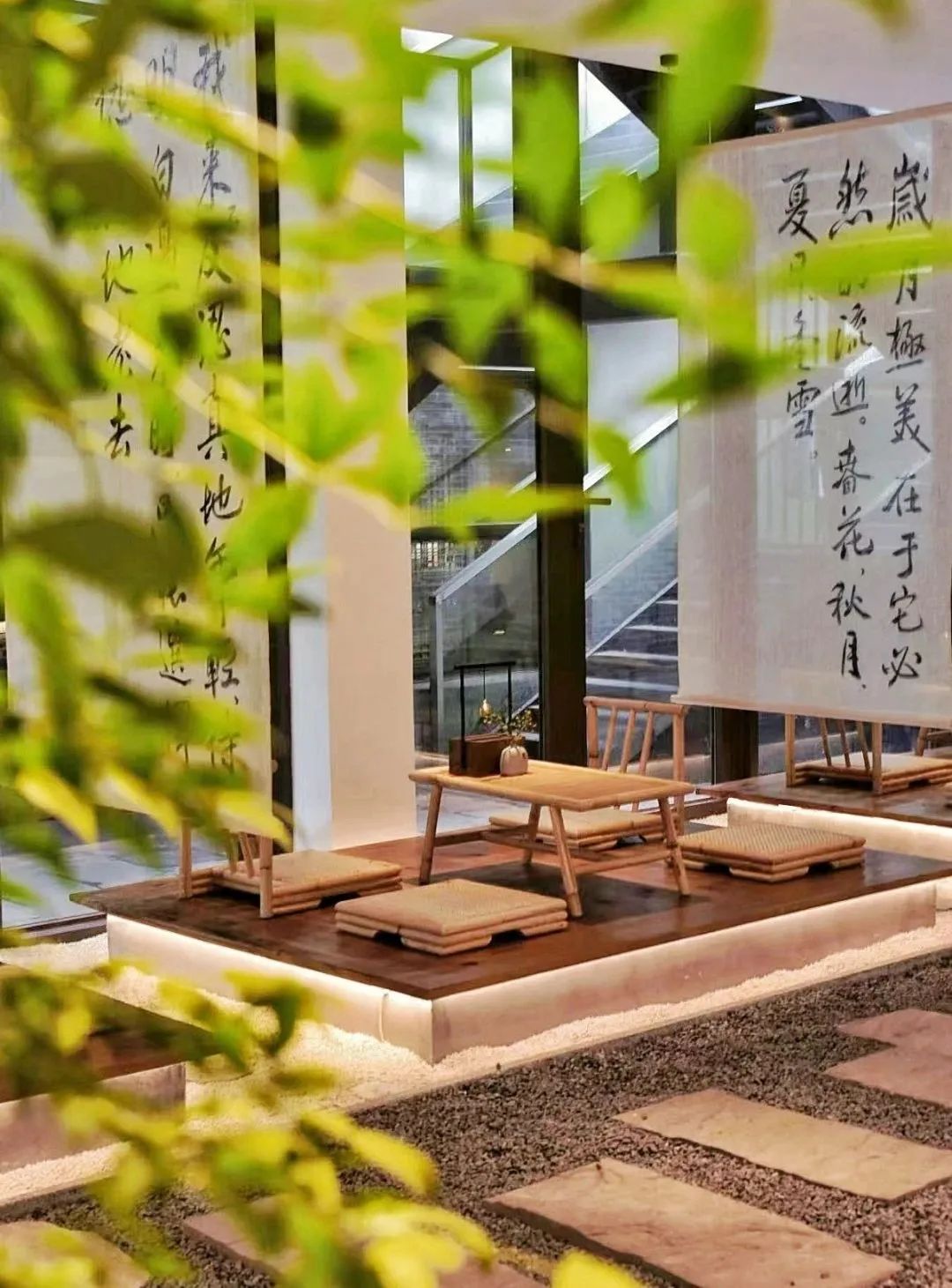 走进店内,碎石小径构建出一方幽静空间,禅意雅致的中式风格让人眼前一亮。 ——我爱哭的时候便哭,我爱笑的时候便笑 ——岁月极美,在于它必然的流逝,春花、秋月、夏日、冬雪