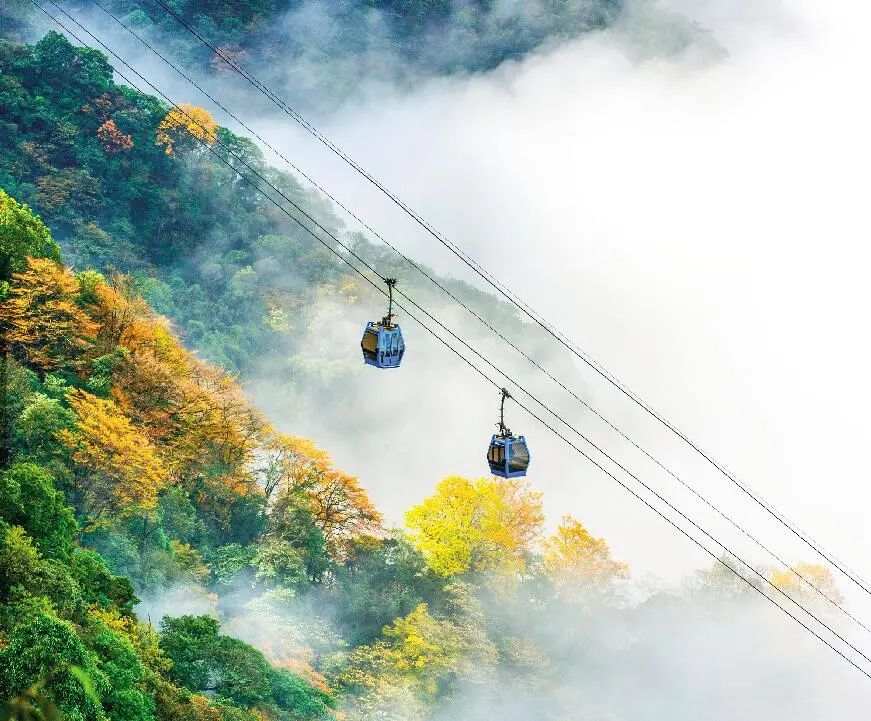 观赏金佛山彩林最佳时期是从11月上旬开始,一直到11月下旬。不过现在去,也不会辜负你的心愿。到达金佛山后,游客可以乘坐索道上山,翱翔于山林之上,在空中遥望彩林,欣赏五彩斑斓的林海,有如人在画中游一般。温馨提示,目前,金佛山西坡索道停运检修,持续至11月15号。在此期间,金佛山上的各个景点以及西坡山下的碧潭幽谷仍将对外开放,游客可以从金佛山景区北门入园,抵达山顶,不影响游览体验。