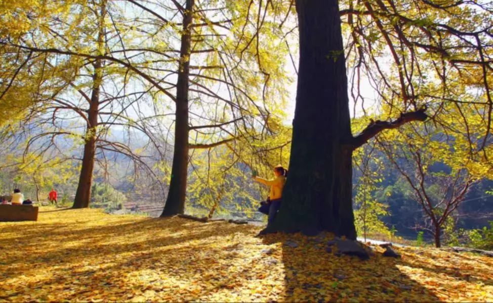 德隆的银杏树有粗有细,粗的需三四人才能合抱,细小的也如碗口粗。棵棵都身披金衣,犹如一位位即将征战沙场的黄金甲武士,威风凛凛。有风拂过,银杏的叶子簌簌落下,装点人间秋色,将地面洒满金黄,好似大地穿上了金色的衣裳。游人低头拾叶,摆一pose用相机“咔嚓”起来,美丽瞬间定格。