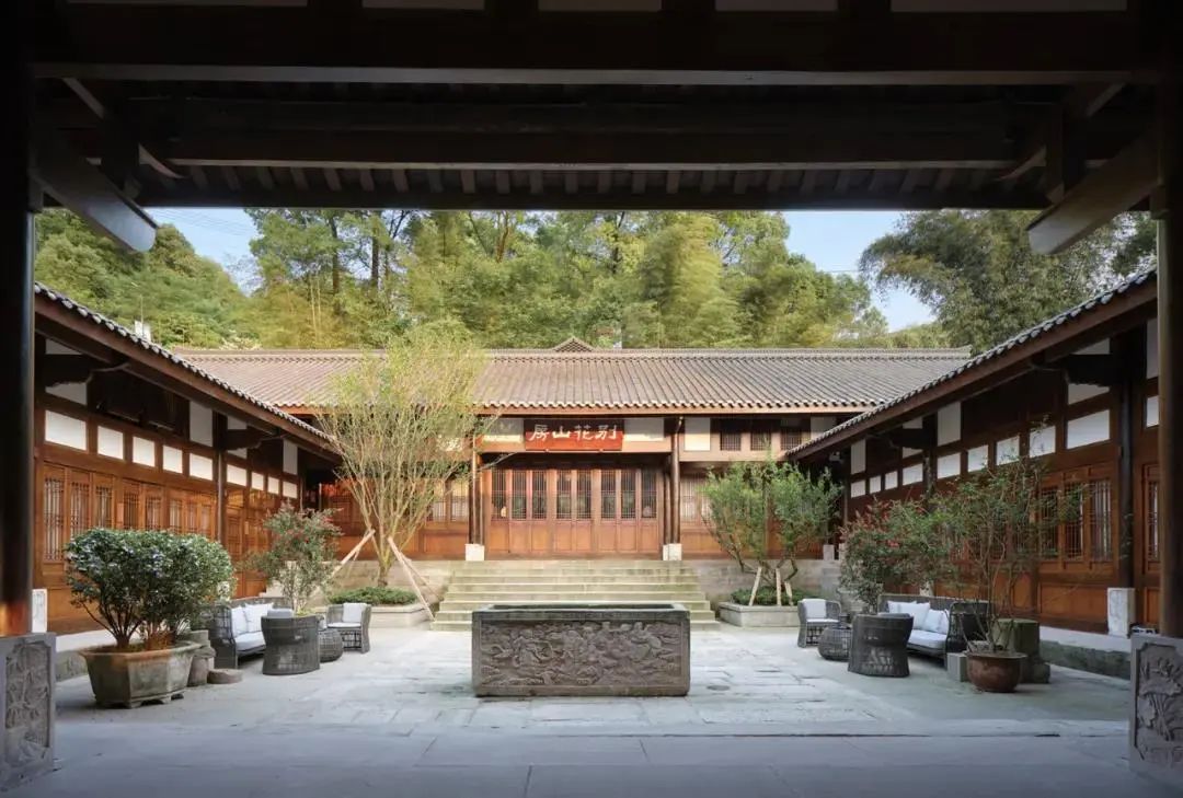 “枫香园”的建筑融合了苏州园林的设计风格,江南民居与巴渝风情的完美契合。更有精致雕刻、富含诗意的匾额、楹联点缀其间,更添整座园林的中华文化风韵。