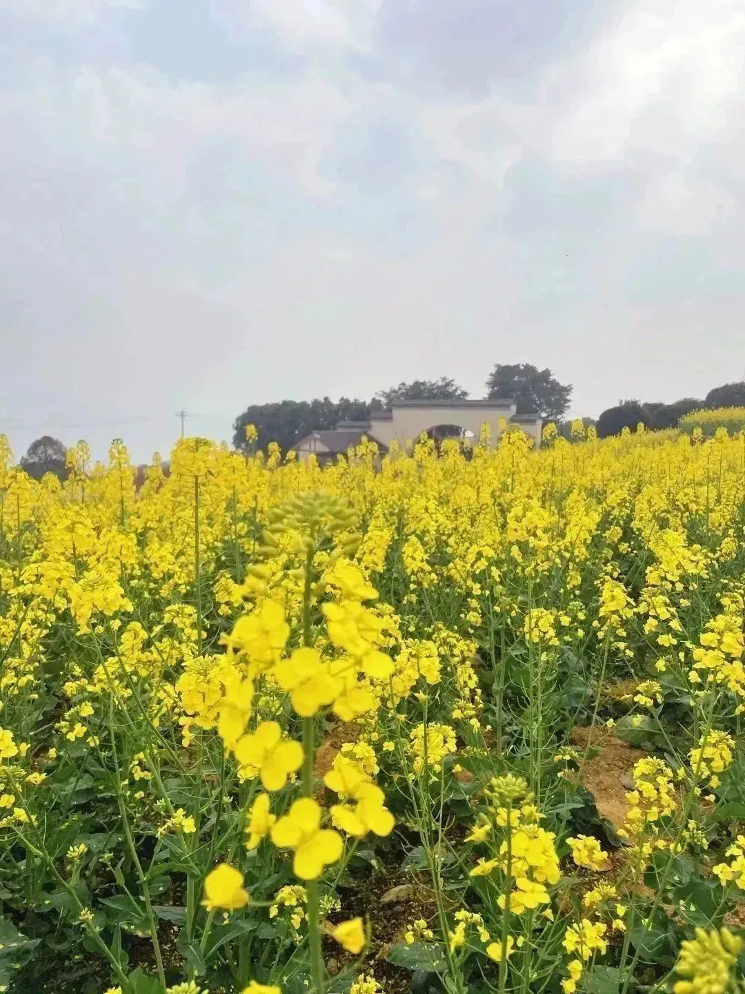 在桃花园的一旁,油菜花顶住了压力,这片金黄色的海洋,同样美得不像话。