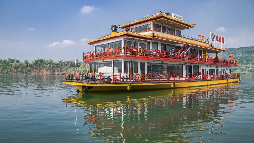 乘“钓鱼城”号白班航行90分钟,夜班航行时间70分钟合川三江六岸美景可尽收眼底