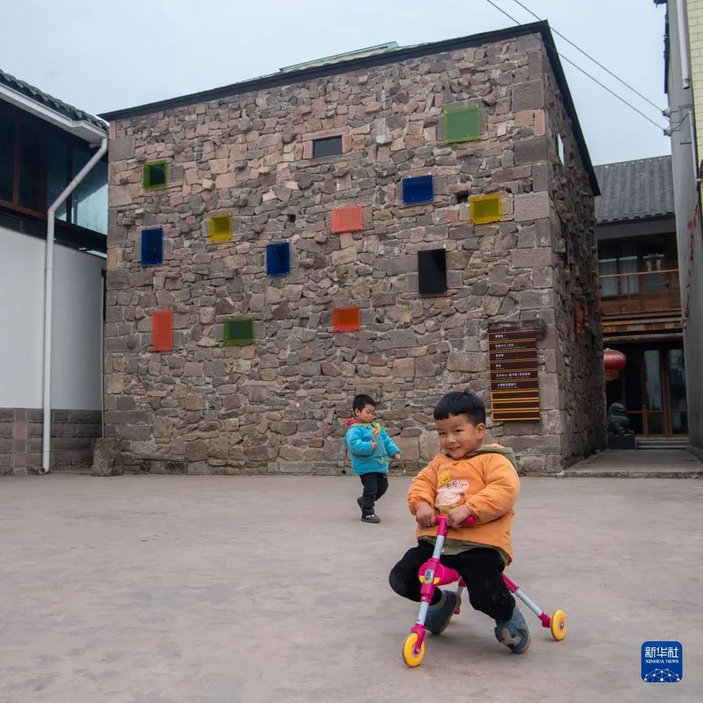 硬件与软件的再造升级,不但保留了乡土风貌,也让破旧的院落焕然一新:断壁残垣被一根根铁条绑定加固,如同给老墙穿上了“铁衣”;旧房拆下的砖瓦、木梁,成为新房的建筑材料;废旧老屋加装了几片多彩玻璃窗,成为色彩斑斓的茶室……虽然只是“微更新”,却处处别出心裁,充满着艺术创作的灵感。