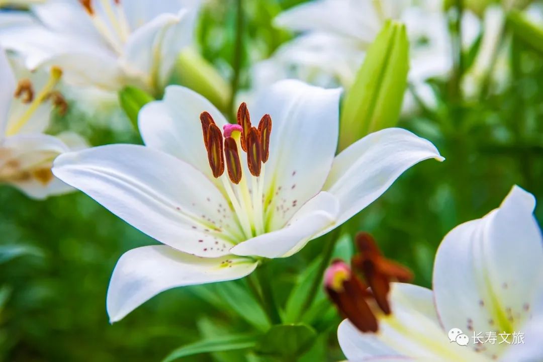 白的、黄的、粉的、紫的……盛开的百合花争奇斗艳芳香满湖,热烈而灿烂