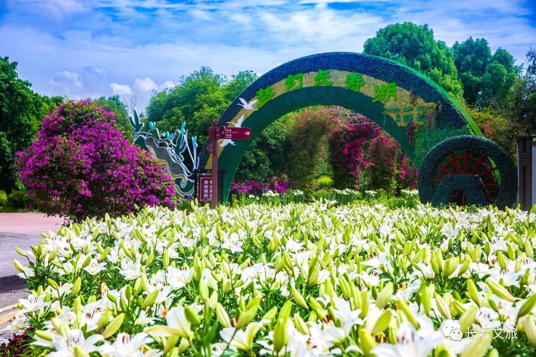 长寿湖今年展出的百合花品种繁多主要有红色活力、印度夏日、橙色沙滩佛拉明戈、粉色阿尔巴、巴赫眼线、黄色宝石、布林迪西等品种共计8万余株