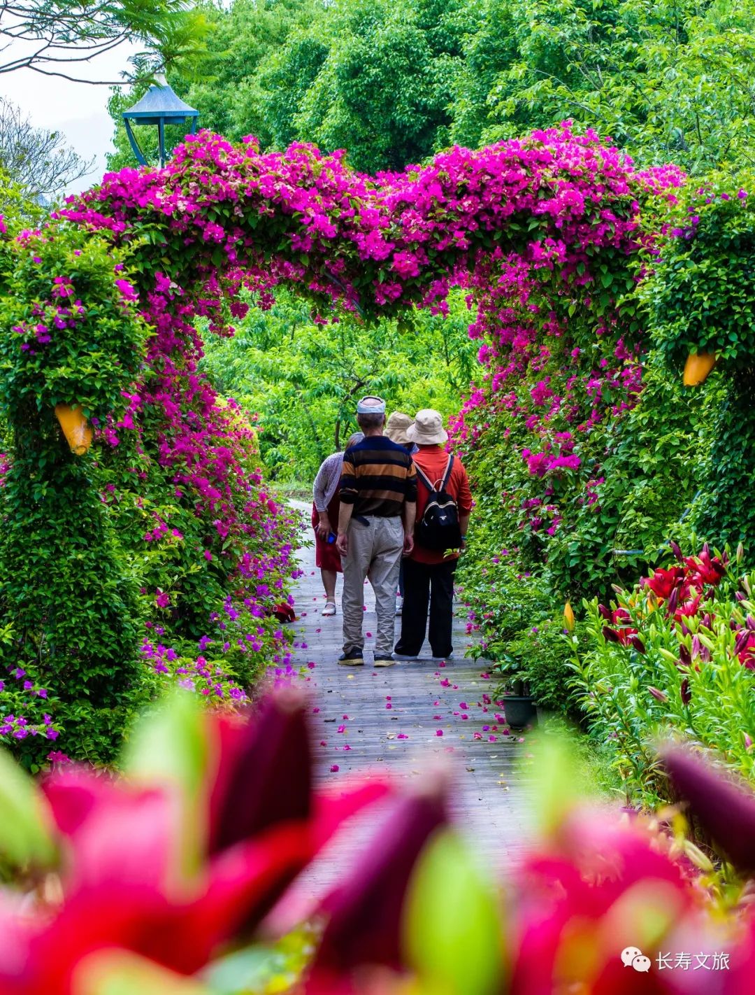 景区还种植有角堇、格桑花、波斯菊三角梅、风车茉莉、绣球等众多花卉色泽鲜艳的花朵,新奇雅致的花姿青翠娟秀的绿叶,亭亭玉立的茎干经过精心搭配,极富韵味