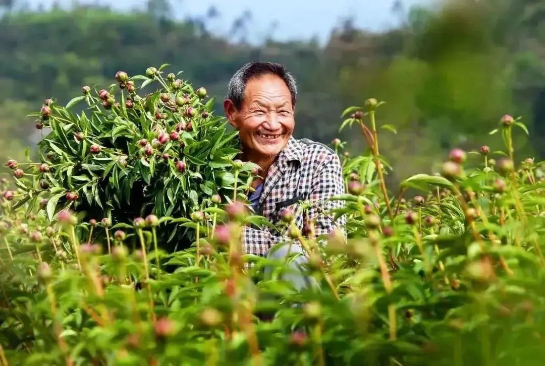 漫山遍野的芍药长势喜人村民们趁着好天气抓紧时间采摘花包朵可用于制作花篮、花束、花环、瓶插花、壁花以及胸饰花等花卉装饰的材料