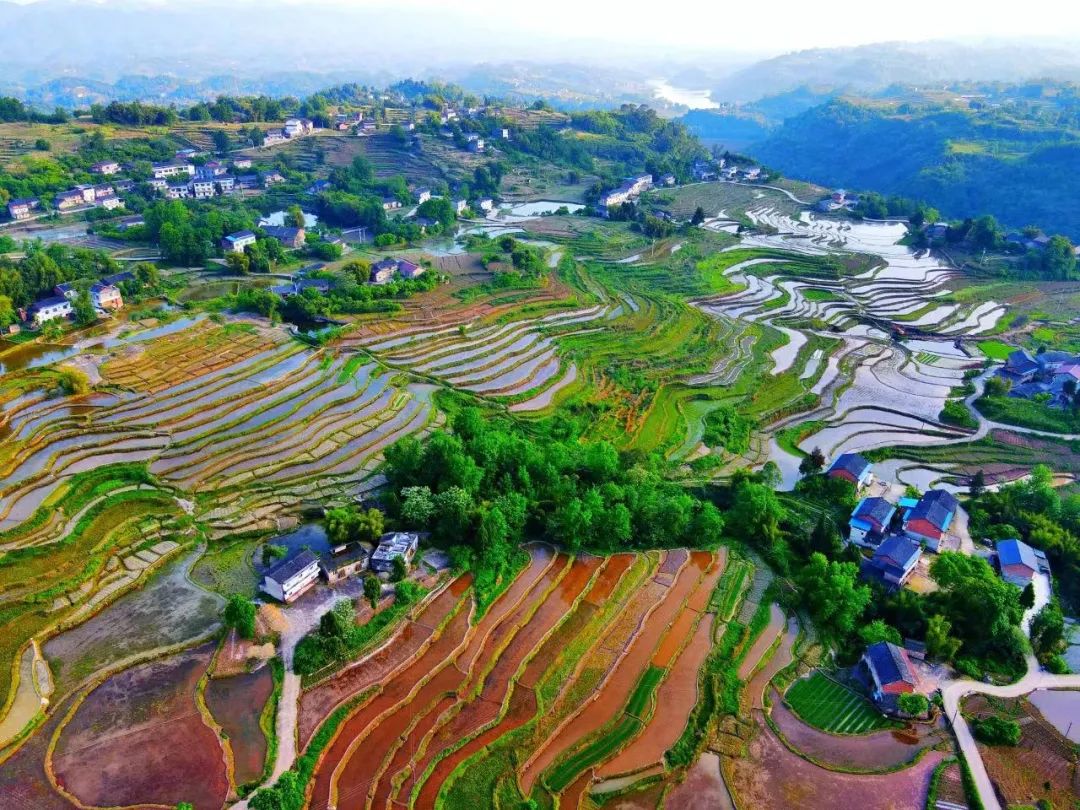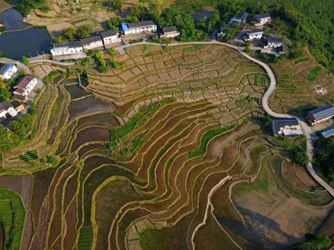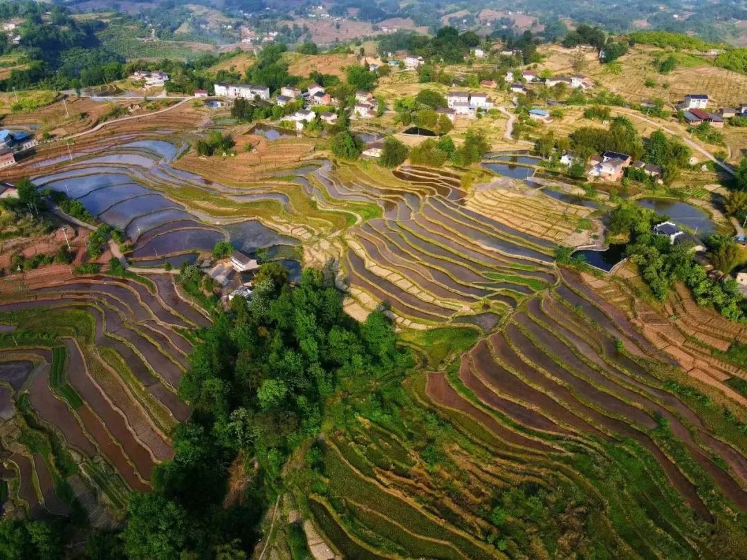 垫江大地,物产丰腴梯田除了农作生计,更是一道靓丽的风景四月春意正浓位于垫江县坪山镇九龙社区的九龙梯田正是它一年中最美的时刻