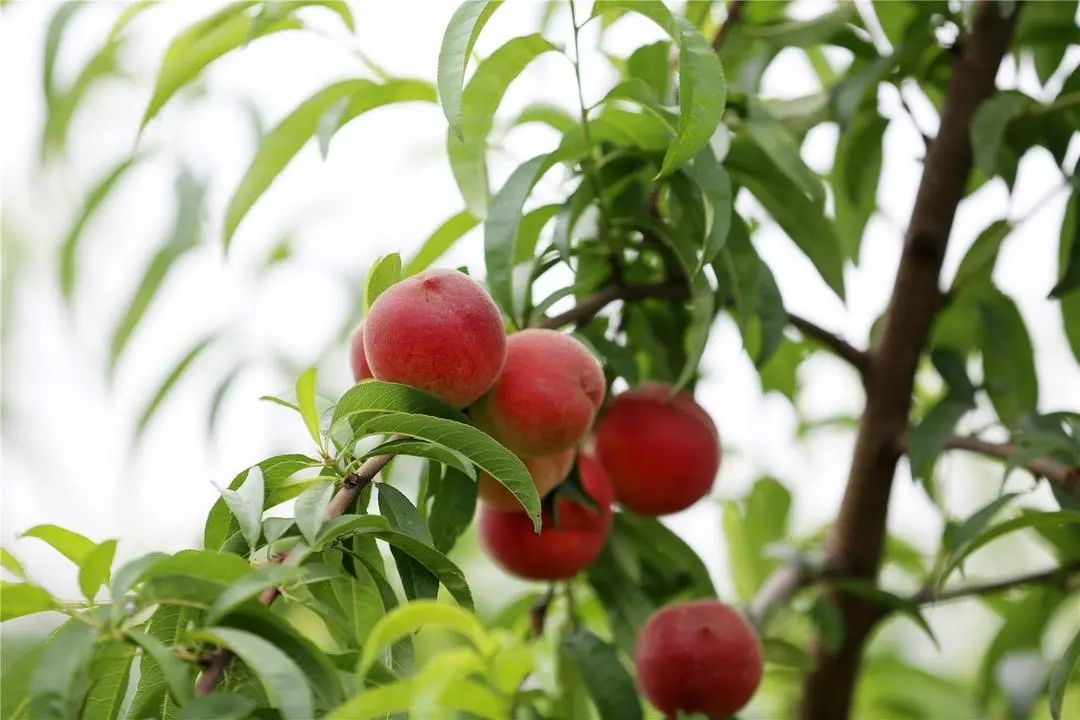 走进桃园,浓浓的桃香扑面而来,拨开绿油油的叶子,只见一个个粉红饱满的桃子把枝条压弯了腰,鲜嫩欲滴,让人垂涎欲滴。