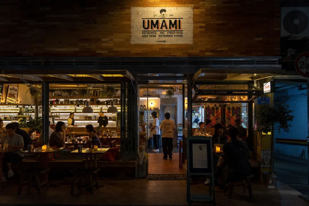 紫薇路舒缓起伏的街道两端,各种新潮的食肆、咖啡店、买手店、小酒馆交错分布,徐徐铺开,每家店装修各有特色,让人情不自禁地想起曼谷那些慵懒曼妙的街道, 有着“重庆小曼谷”的美称。