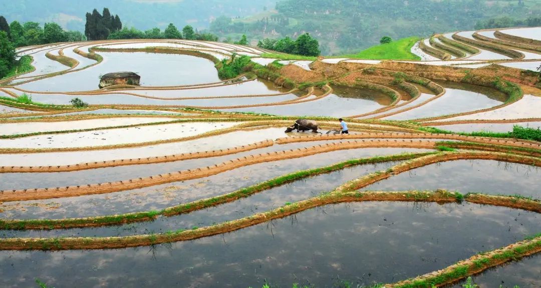 而且,多去几次,你才知道山谷里的梯田多姿多彩景色有多美、有多迷人。清明时节,冬水田蓄积清清山泉水,映衬晨雾朝霞,宛如山谷散落的一弯弯明镜。谷雨时分,村民们犁田耙田忙插秧,山歌飞扬布谷欢唱,山谷里的梯田披挂起了淡淡的绿春装。秋阳临空,秋高气爽,层层梯田稻穗飘香,微风拂起重重金浪,村民们割谷搭谷晒谷,一年辛勤劳作的满满收获即将归仓,这是山里人最惬意、最欣喜的时光。无论春种,还是秋收,登高望远,一览无余的太和梯田都会让你心胸开阔、心旷神怡。