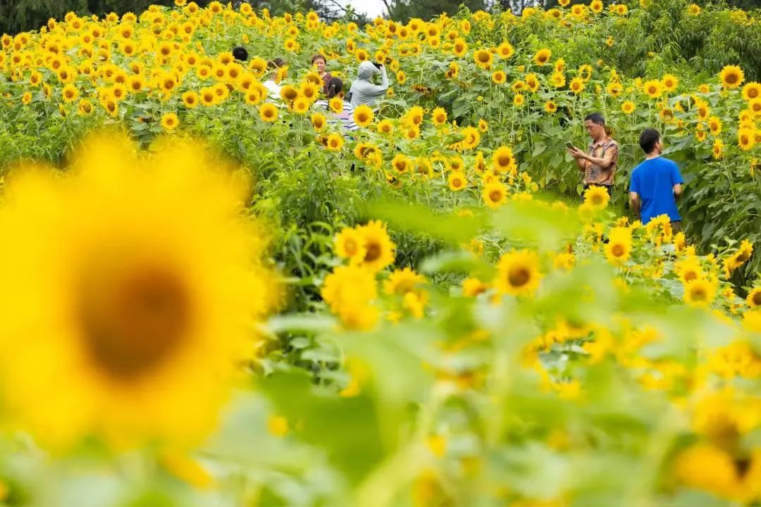 在云溪谷,你能看到黑天鹅在睡莲间嬉戏,泛舟湖上,还能近距离观赏荷花。除了荷花,热烈的向日葵也开得灿烂。