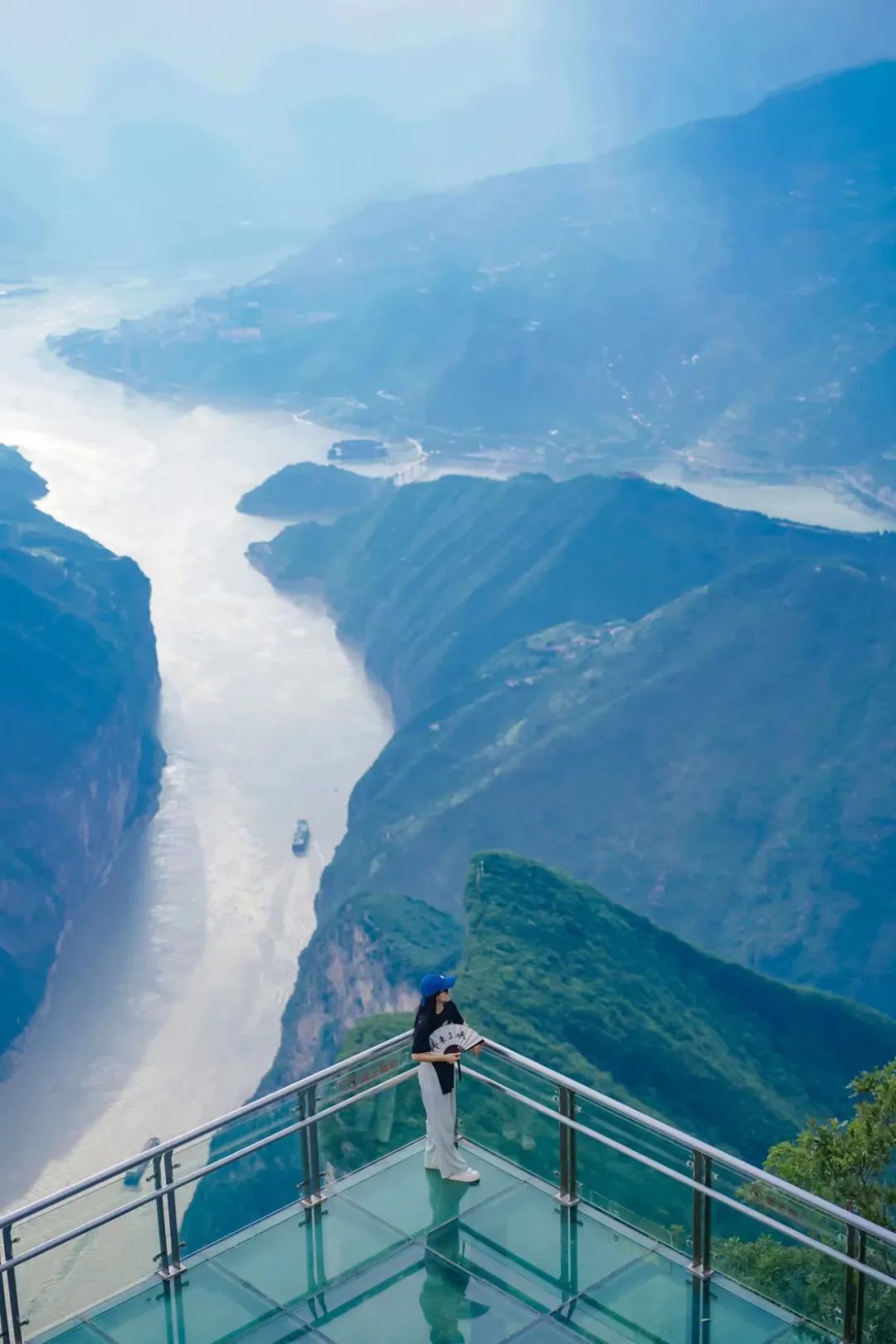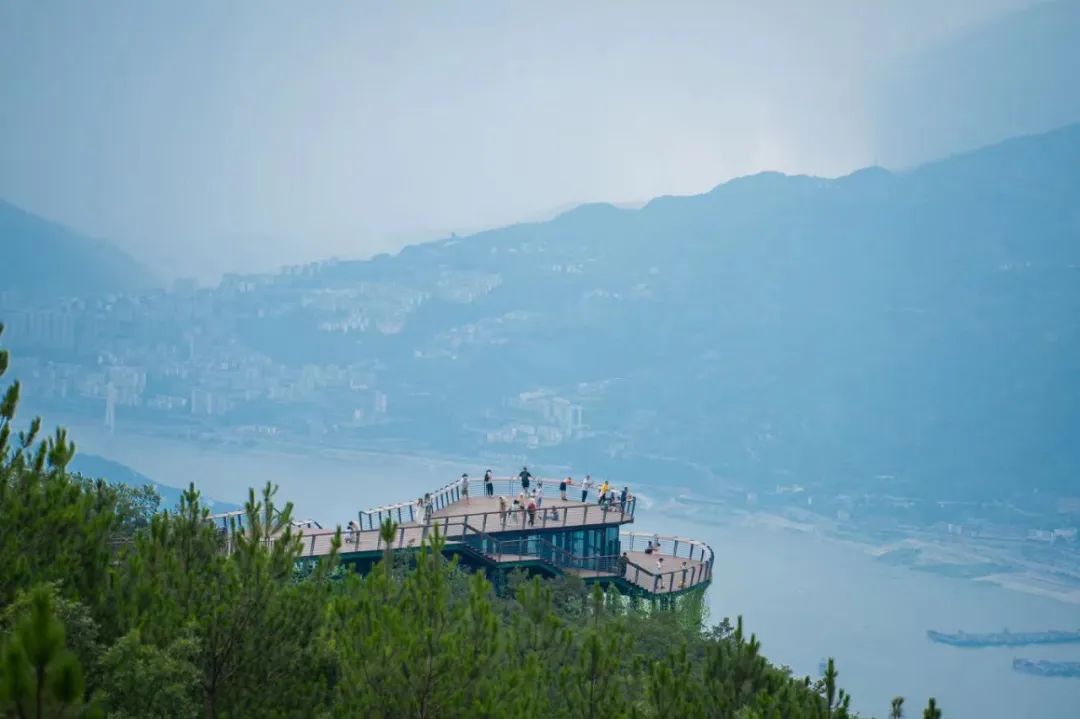 这次我们乘坐三峡之巅索道上山,走过夔乐桥,沿着游览栈道到达三峡之巅观景台。