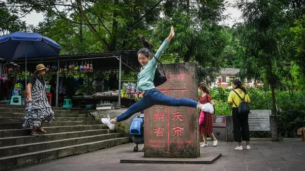 在大洪海和金龙寺之间,屹立着一块渝黔界碑,站在这里,可以体验一脚跨两省的乐趣。