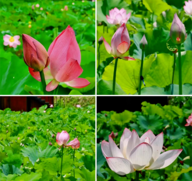 土家十三寨院落之间分布着大量的荷花,现在正是荷花盛开的季节,花期可以持续到八月底九月初。