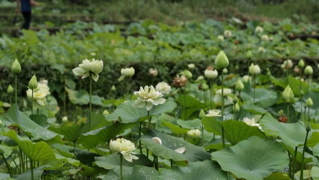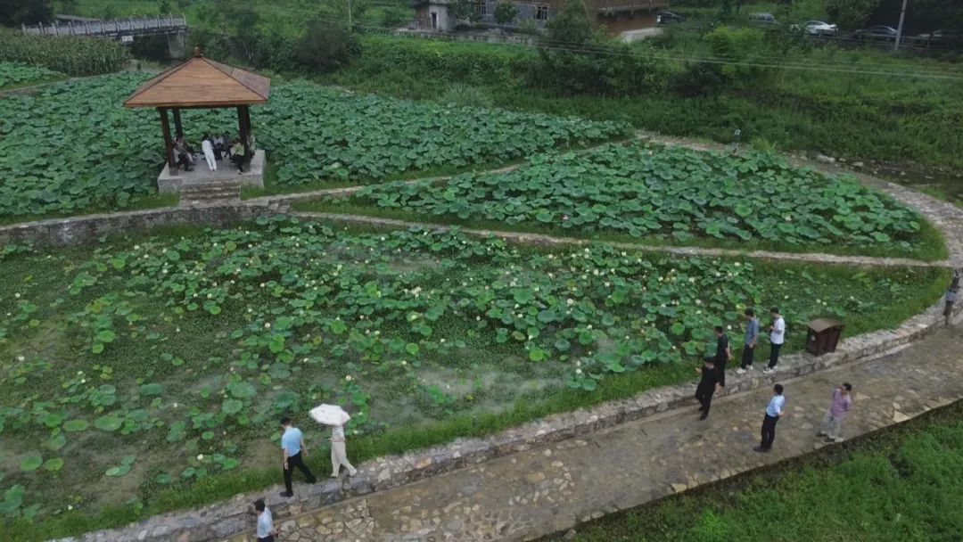 游客三五同行,时而闻香赏花,时而小道行走,时而与莲同框,尽情感受山清水秀、荷叶田田的生态美景,好似人在画中游一般。