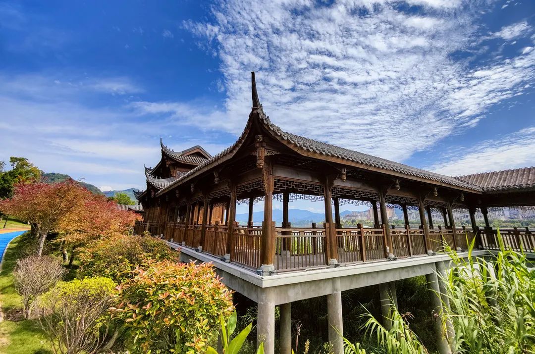 在水位调节坝的风雨廊桥看看,望汉丰湖湖面碧江盈盈,在廊桥上欣赏古色古香的建筑。安静地看湖光山色。
