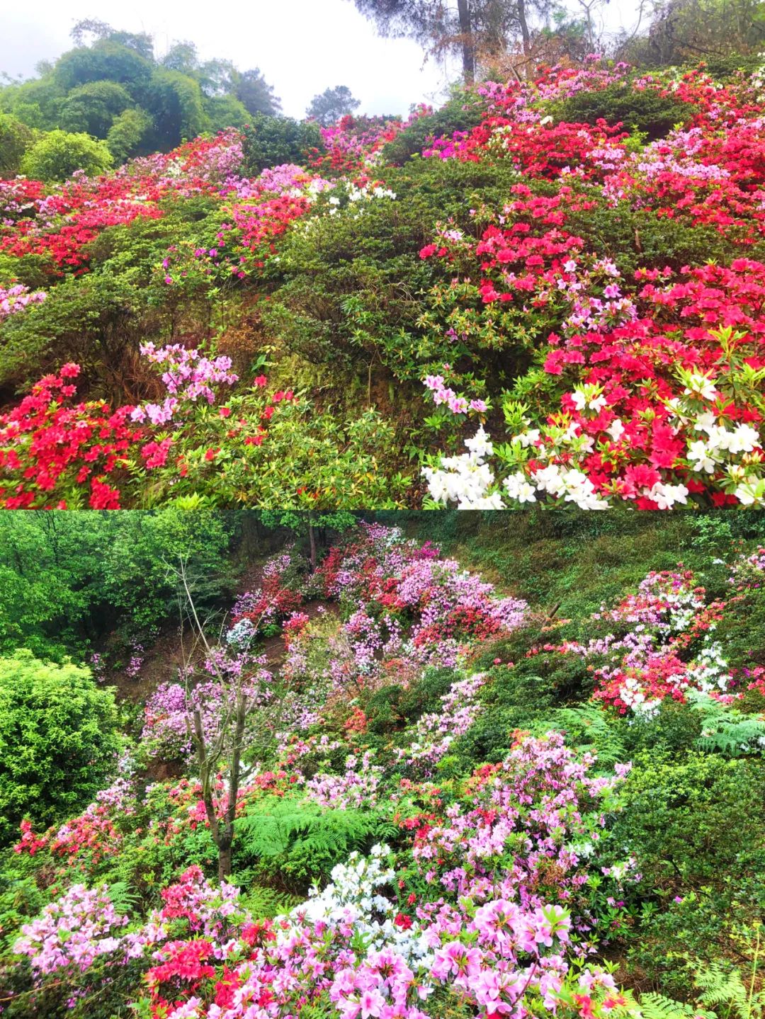听说,南山的杜鹃花又又又开了姹紫嫣红的杜鹃花已经形成了一大片花海仿佛一幅绚丽的画卷