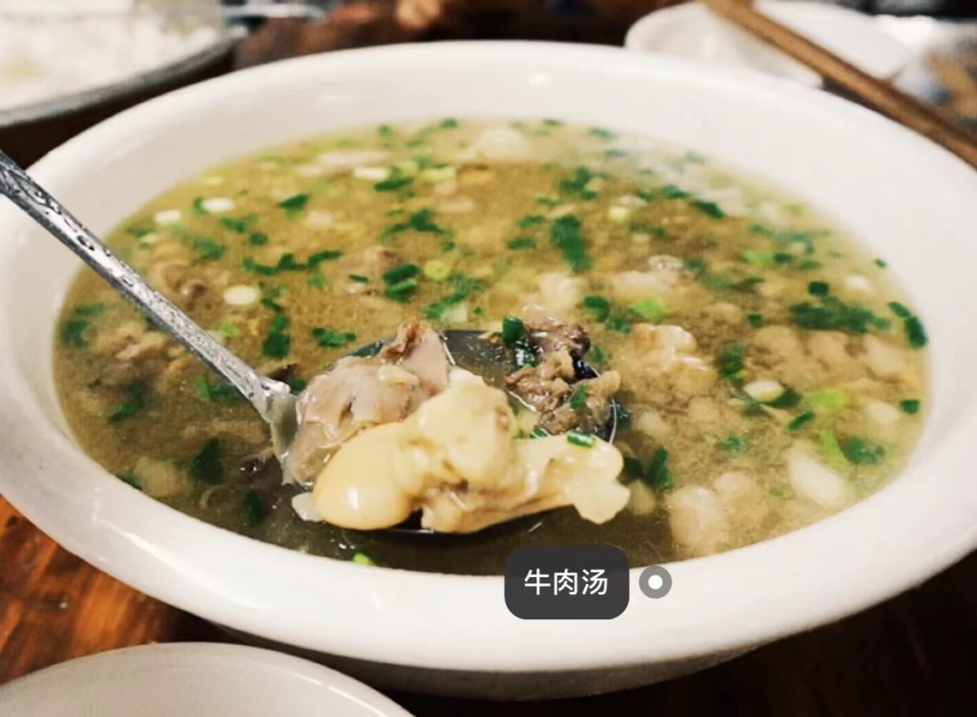 “牛肉汤”:超级浓香的牛肉味道,值得一提的是汤里的大豆比牛肉还要好吃,一点也不油腻,喝起来非常的鲜甜,不管是泡饭吃还是单喝,都超级好吃哦~