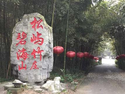 碧海山庄围裹在山竹之中。这里景致四时不同:到了春季,处处山花烂漫,新竹竞上,一派生机盎然的景象;盛夏时,一片凉荫,清爽宜人;金秋时节,时有丹桂飘香,令人心碎;隆冬中,偶有雪霜,而在市区是很难见到如此冬景的。然而不论何时,你满眼看到的总是那或浓或淡的碧绿。登高观景:清风拂过,挤扎密扎的竹梢此起彼伏,有如田中麦浪,让你顿生畅游碧海的感觉。在“碧海”淹掩之下的碧海山庄,总是散发着它独特的魅力。