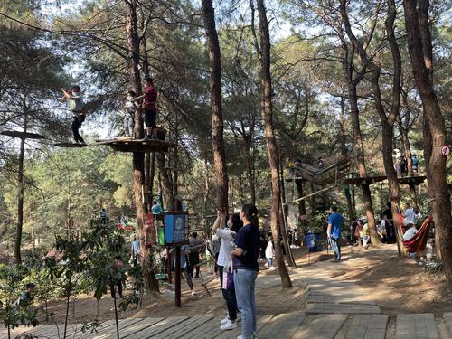 据了解,在铁山坪之巅的4A级景区玉峰山上,不仅空气清新,游客还可以骑自行车、放风筝、钓鱼、采摘草莓、踏青赏花,开车一两公里,还有穿越丛林、真人CS、射击射箭体验馆、林下高尔夫等游乐活动,非常适合一家人带着孩子前往休闲踏青,游乐之后,可以在当地品尝著名的特色美食花椒鸡。