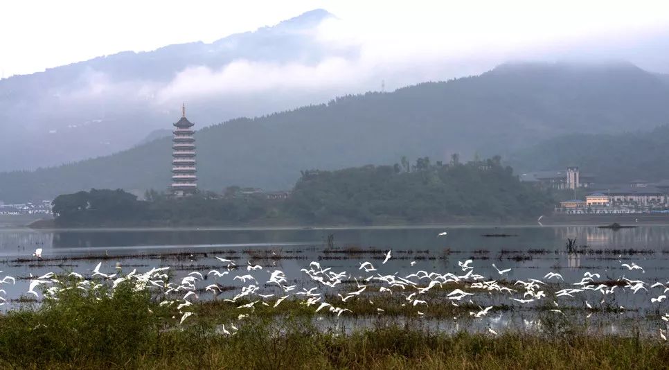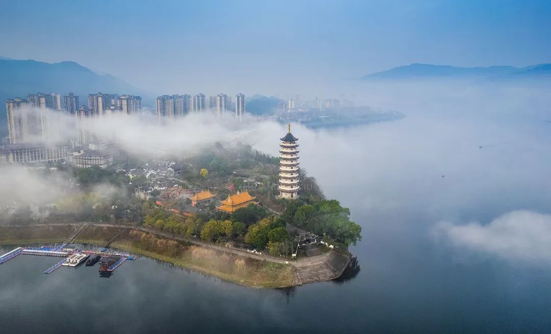 泛舟湖上经过开州举子园你能看见文峰塔竖立在这里依托着文峰半岛的自然山水去感受“湖在城中,城在山中,人在山水中”的独特意境