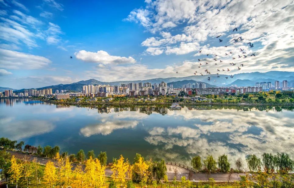 一场大雨的洗礼过后开州褪去往日的炎热空气中的风都带有一丝凉爽初秋时节的开州格外美丽漫步汉丰湖畔被湖畔美景深深吸引湖水波光粼粼周围的自然环境清幽宜人湖水倒映着天空和周围的景色景色如诗如画。