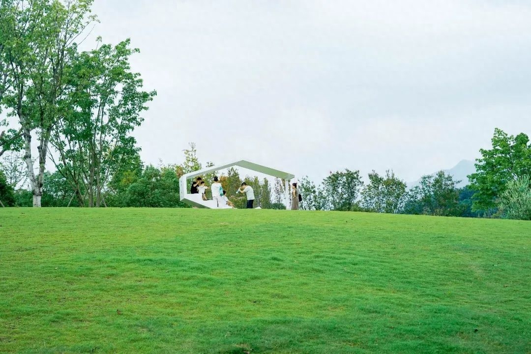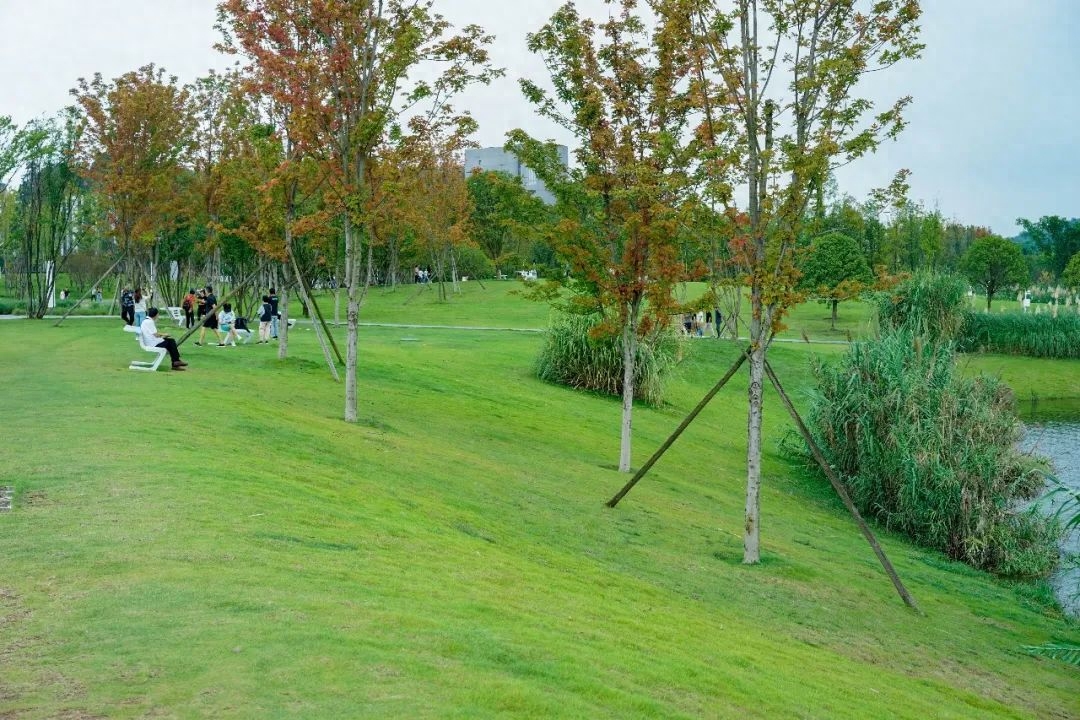 走两步就是大片大片的草坪,树木葱茏、满眼皆是绿,坐在草坪上拍照打卡、吹着凉风简直太舒服。