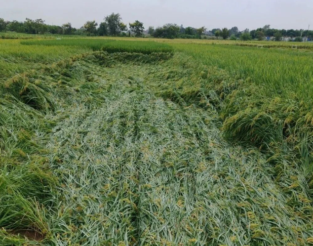 最近气温降下来了,降幅超过10℃,同时起风了,风级4-7级,大树吹的沙沙响,进入灌浆期至成熟期的水稻可不经吹,尤其是偏施氮肥、病虫害发生严重或者抗倒性较差的品种,大风一吹就成片倒伏了。水稻一旦倒伏,产量和米质均要大幅度下降,还会增加病虫害危害,收割成本增加,现在的种植成本很高,粮食价格又低,倒伏了最终卖了稻谷不够成本,种田不容易!