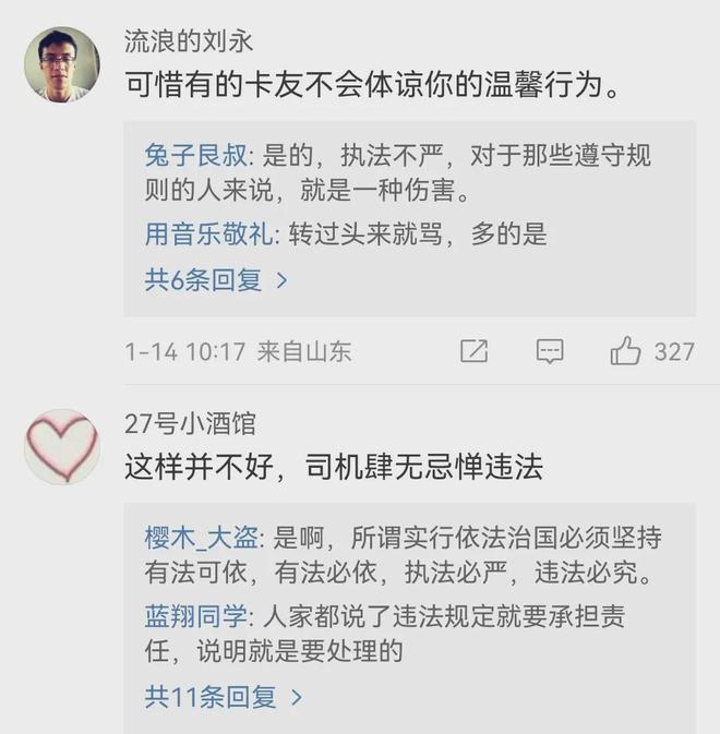 因为个别卡车司机的“得寸进尺”“占小便宜”,就拒绝人性执法,这和平常说的“一刀切”有什么区别呢。