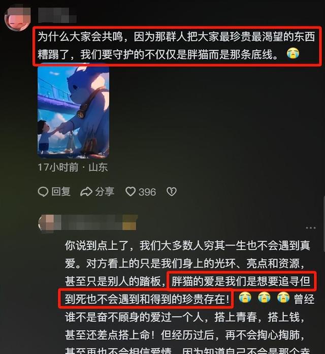 然而,胖猫可能已经失去了这样的机会。网友对此感慨:“真爱不会轻易挥霍你的财富。”“爱总让人觉得亏欠,因为每一分钱都承载着对方的付出与努力。”