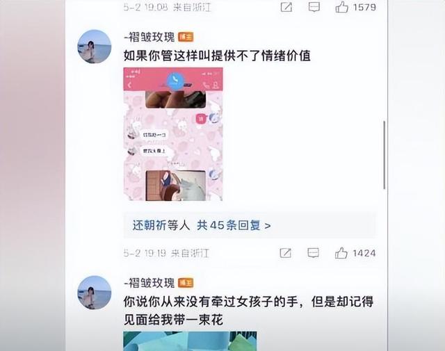 而胖猫前女友“褶皱玫瑰”晒出的恋爱日常,与谭竹的说法截然不同。每次约会都献花,工作时也要连线互动,这简直是两个人对胖猫的印象大相径庭。