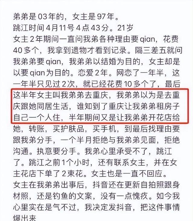 胖猫姐姐发布的聊天记录,每一句话都像一把尖刀,刺痛了公众的神经,两年的对话,满屏都是关于金钱的纠葛,甚至在他跳江前,还转账6.6万,标注为自愿赠予,这种道德沦丧的行为引发了滔天的谴责。