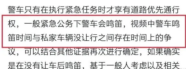 还有网友注意到,刚开始的时候警车并没有打开警笛,后来私家车没有让行,才立刻打开了警笛,这属不属于利用职务之便?逼停对方顺便查车?