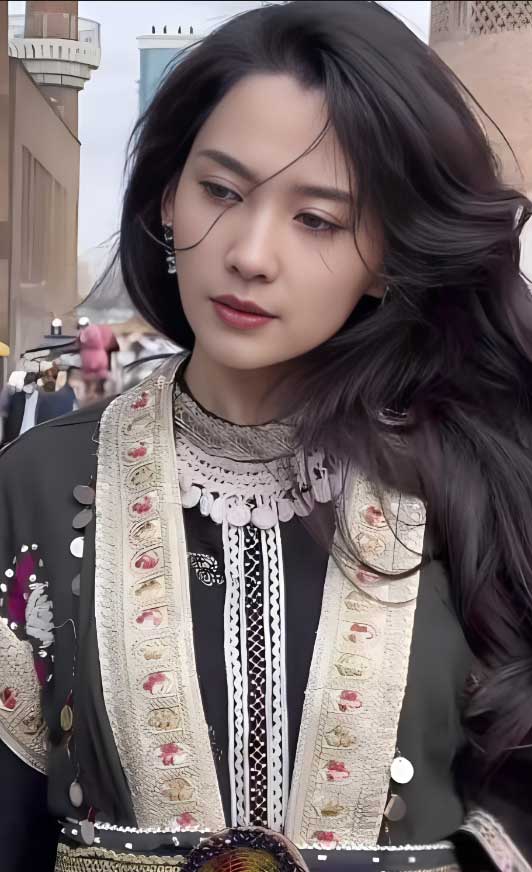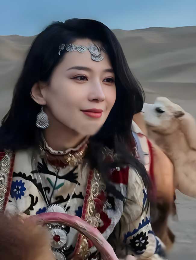 当李巧外出旅行时,她在穿上少数民族服装的时候展现出了一种异国情调的美感。