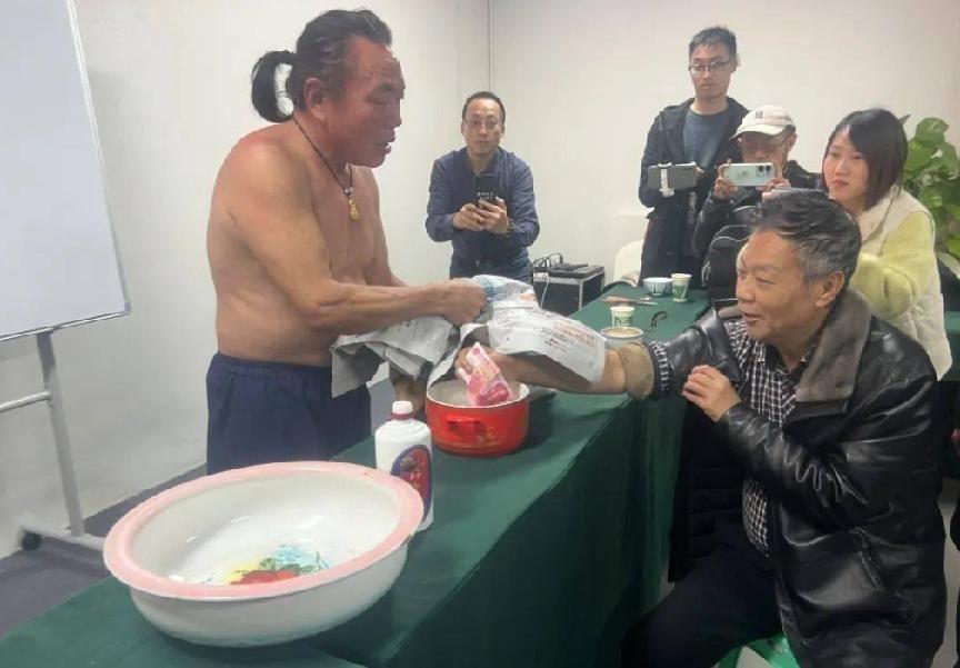为了让人更好的相信他身上没有藏钞票,杨德贵会将衣服全部脱光,赤裸着在大家面前表演自己的秘术。