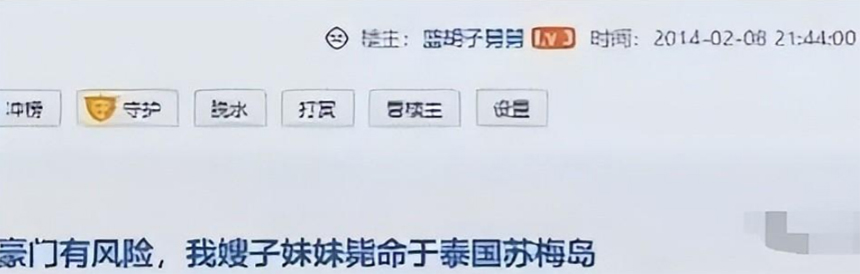 本以为这件事到此就结束了,谁知同一年,一则题为《豪门有风险,我嫂子的妹妹毙命于泰国苏梅岛》的故事引起了广泛关注。