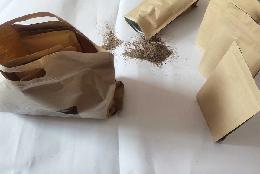 患者家属留存的所谓治癌秘方药,呈粉末状、咖啡色。受访者供图