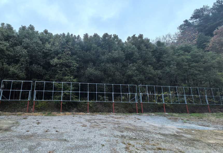 牌楼东南侧路边的停车场,如今已冷冷清清。昔日宣传栏上介绍抗癌专家的壁纸已不在,裸露出铁架。