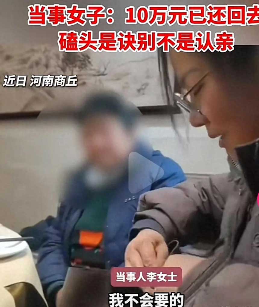 女子磕完头,就从包里拿出昨天父母留下的10万元现金,递给母亲,说:“这钱我不能要,你拿走吧。”