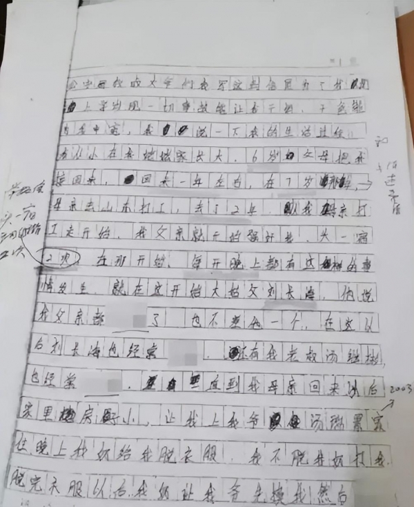 也就是在这天晚上,汤兰兰亲手写下了那封震惊全国的举报信,信中汤兰兰详细描述了自己的遭遇,从她6岁起,亲生父亲汤继海趁着母亲外出打工,就对她实施了侵犯,在这之后姑父和叔叔也参与了进来,万秀玲回来之后,以家里地方太小为借口,把汤兰兰送到了爷爷家,在奶奶的逼迫下,汤兰兰顺从了爷爷的暴行。