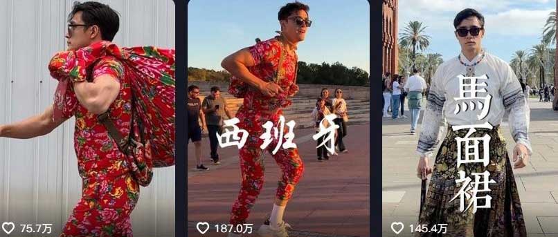 2023年年底,他凭借穿着东北大花在外国街头溜达的视频火出圈,坐拥700多万粉丝。