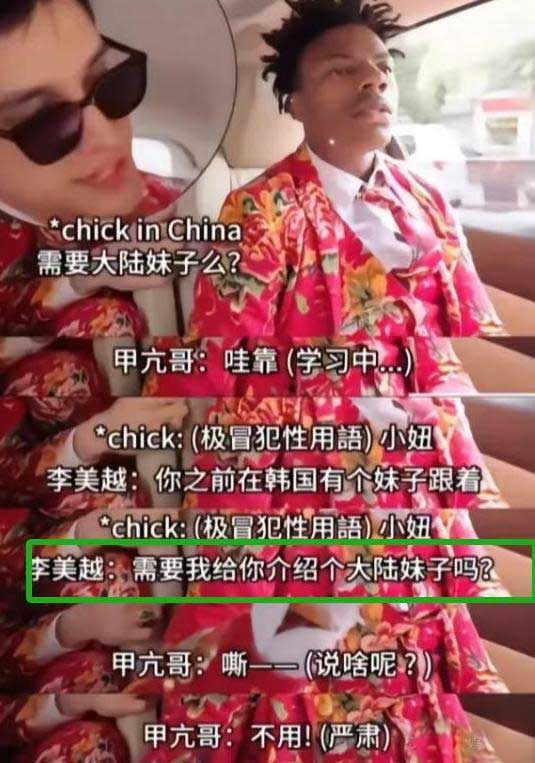 不过让人意外的是,这个被打码的人竟是以“爱中国”闻名的网红李美越。