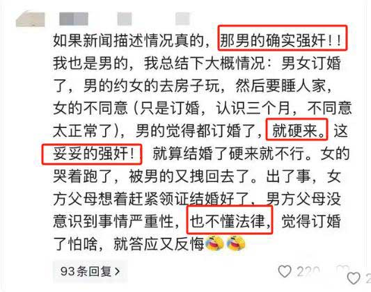 而不少网友也是同样的想法,毕竟男女双方一旦订婚,双方家庭乃至社会都会默认两人即将结为夫妻,彼此之间的关系也会被赋予更多的亲密和信任色彩。