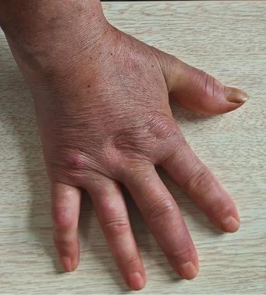 近4个月来一直被手部肿痛折磨起初只是一个小脓疱没想到之后却整只手都红肿疼痛