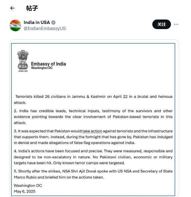 国内外的政治压力也让印度必须“克制”。尽管莫迪政府擅长以强硬形象赢得国内支持,但冲突失控可能引发国际社会不满,动摇政治基础。因此,印度迅速借美国的“对巴喊话”,强调要“避免升级”、“行动要有节制”,既展示国内已采取行动,也对外界传达非主动挑衅的态度。