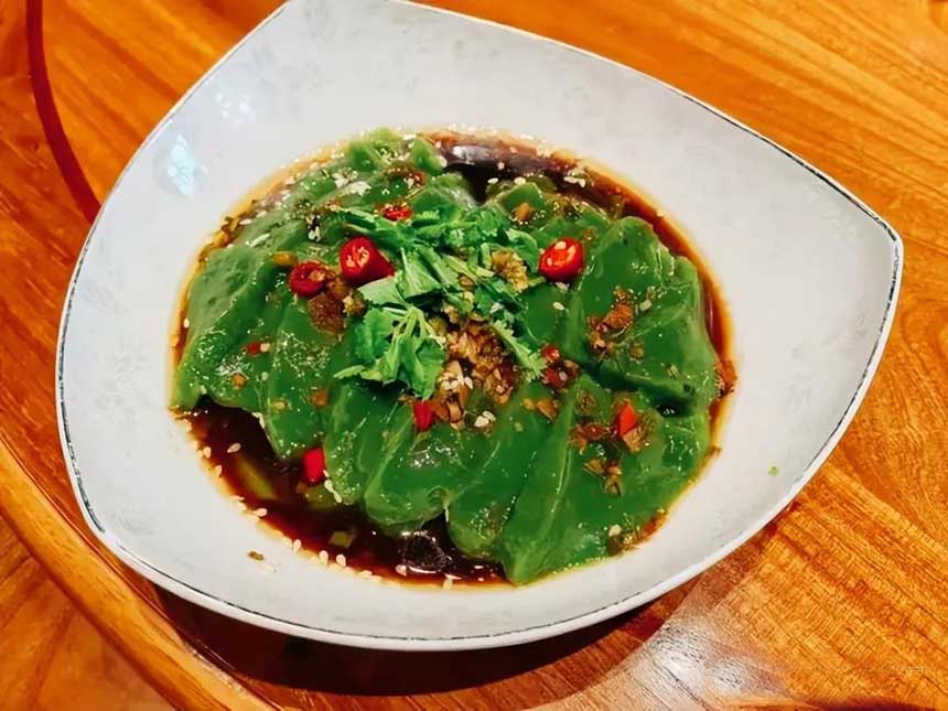 用做夏布的桑叶搞成绿色凉粉,蒜泥芝麻油一拌,吃完感觉能多活五年。