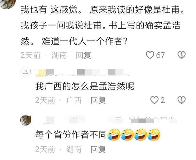 这以后还叫我们怎么辅导孩子?我们学的是孟浩然,孩子课本是杜甫和王维,我该说孩子错了还是我错了?