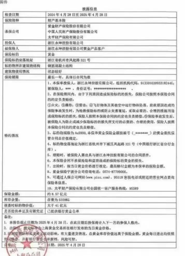 2. 保险公司不核查标的物真实性,永坤用同一批黄金在5家保险公司重复投保